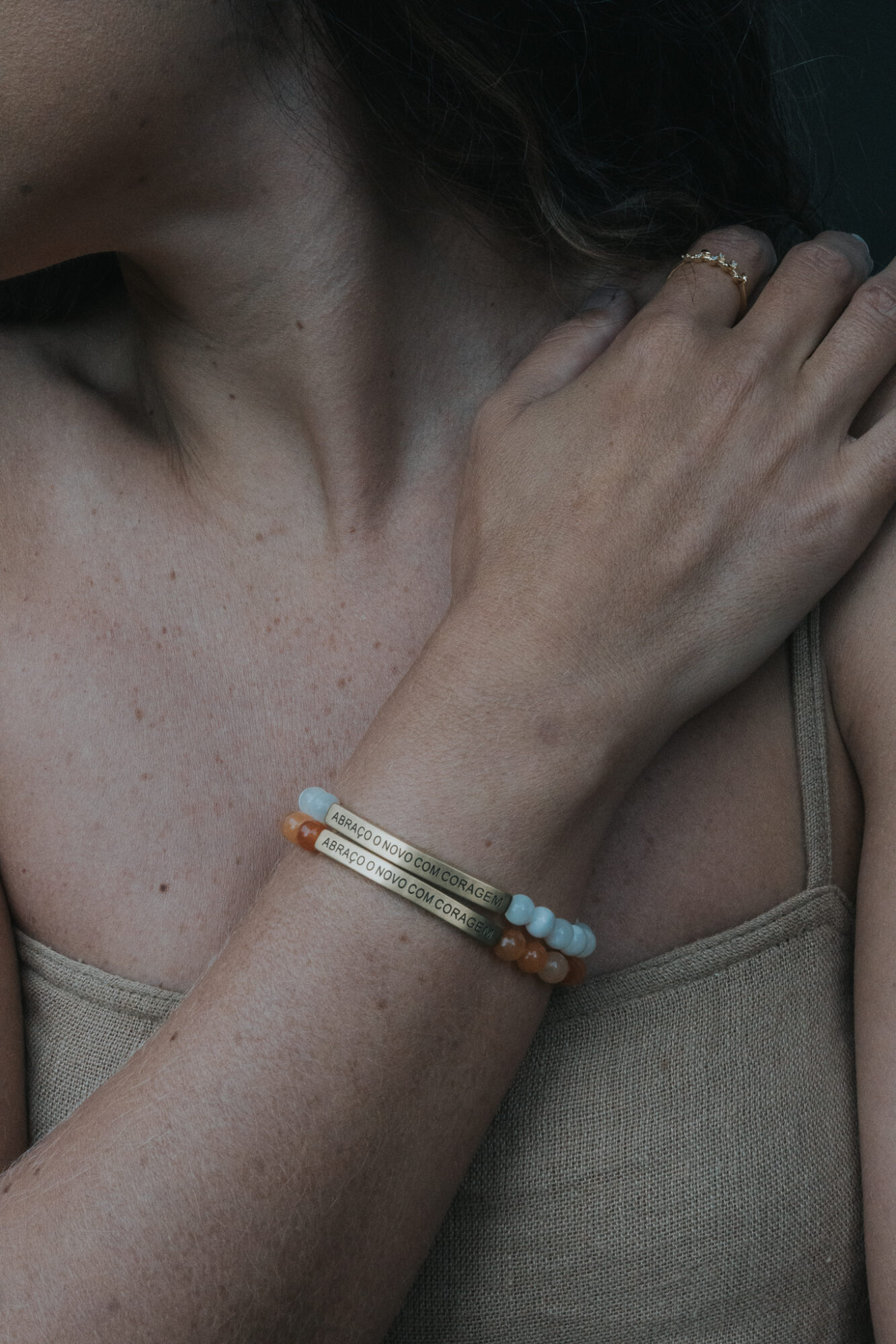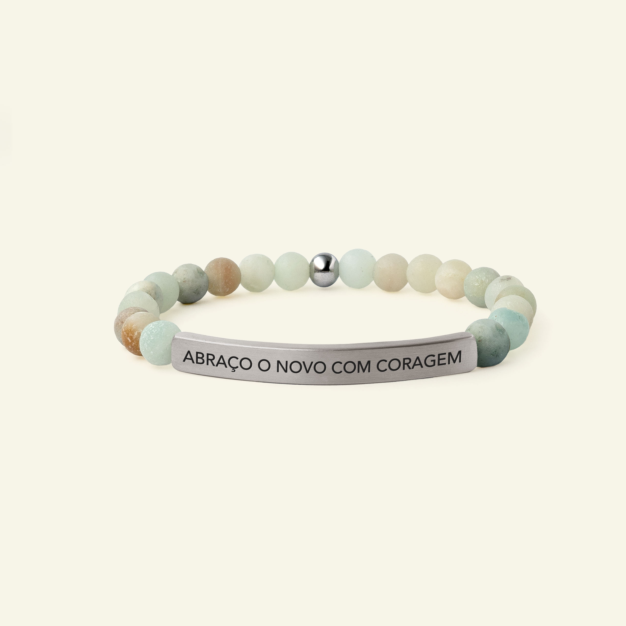 As pulseiras Oráh são confeccionadas com pedras 100% naturais, cada uma exibindo singularidade em sua beleza. A base das frases é de aço inoxidável 403, proporcionando durabilidade e resistência ao produto. Pensadas com carinho para a saúde dos nossos clientes, as peças são hipoalergênicas e isentas de níquel ou chumbo. Utilizamos silicone resistente e, ao mesmo tempo, confortável. Os tamanhos disponíveis variam de 17 a 18 cm; essas dimensões proporcionam um ajuste perfeito às pulseiras Oráh. As esferas das pedras são de 6 mm de diâmetro e podem apresentar variações de cor, tamanho, peso e cheiro devido à natureza do produto.