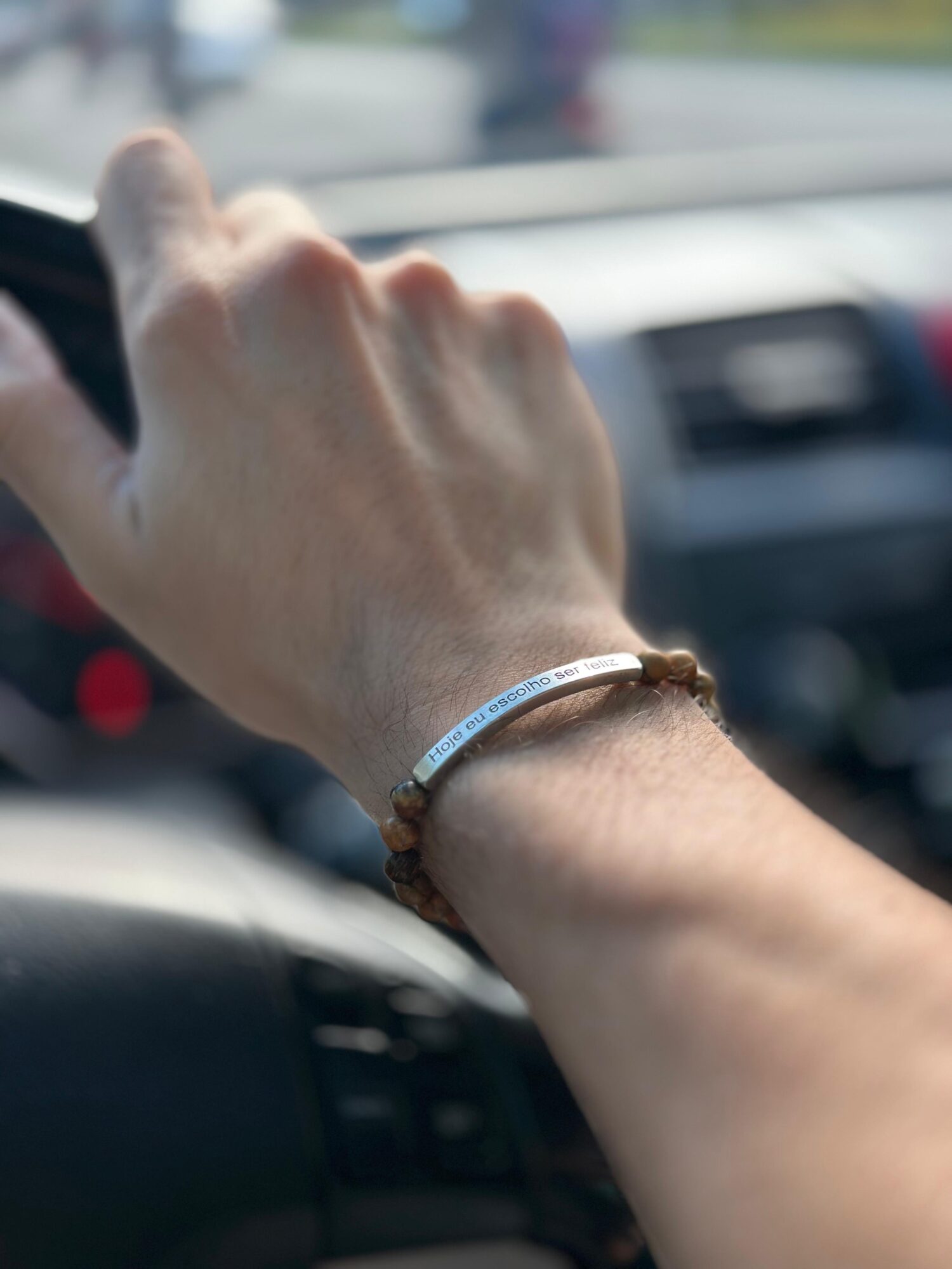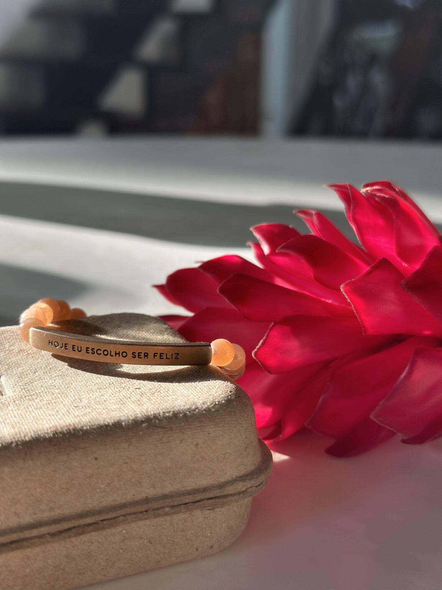 Ao escolher “Hoje eu escolho ser feliz”, você celebra a coragem de se abrir para o inesperado, de superar os próprios limites e de enxergar nas mudanças uma oportunidade de se reinventar. É um lembrete de que, mesmo diante do desconhecido, somos capazes de seguir em frente, com coragem no coração e a certeza de que o novo traz o potencial para algo extraordinário. A pulseira com esta mensagem está disponível em variações de pedras e benefícios distintos. Conheça as pedras e significados na seção ao lado