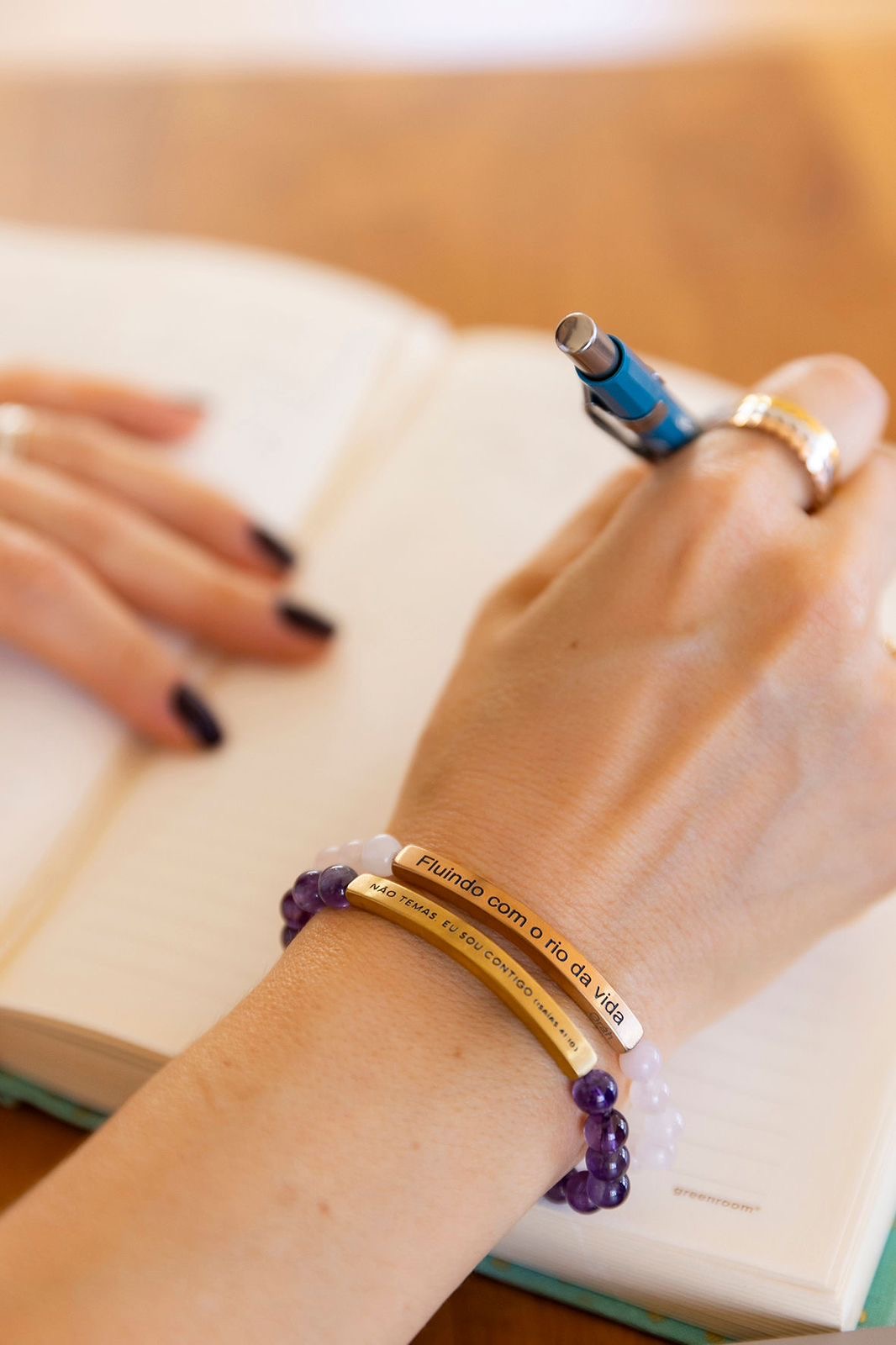 As pulseiras Oráh são confeccionadas com pedras 100% naturais, cada uma exibindo singularidade em sua beleza. A base das frases é de aço inoxidável 403, proporcionando durabilidade e resistência ao produto. Pensadas com carinho para a saúde dos nossos clientes, as peças são hipoalergênicas e isentas de níquel ou chumbo. Utilizamos silicone resistente e, ao mesmo tempo, confortável. Os tamanhos disponíveis variam de 17 a 18 cm; essas dimensões proporcionam um ajuste perfeito às pulseiras Oráh. As esferas das pedras são de 6 mm de diâmetro e podem apresentar variações de cor, tamanho, peso e cheiro devido à natureza do produto.